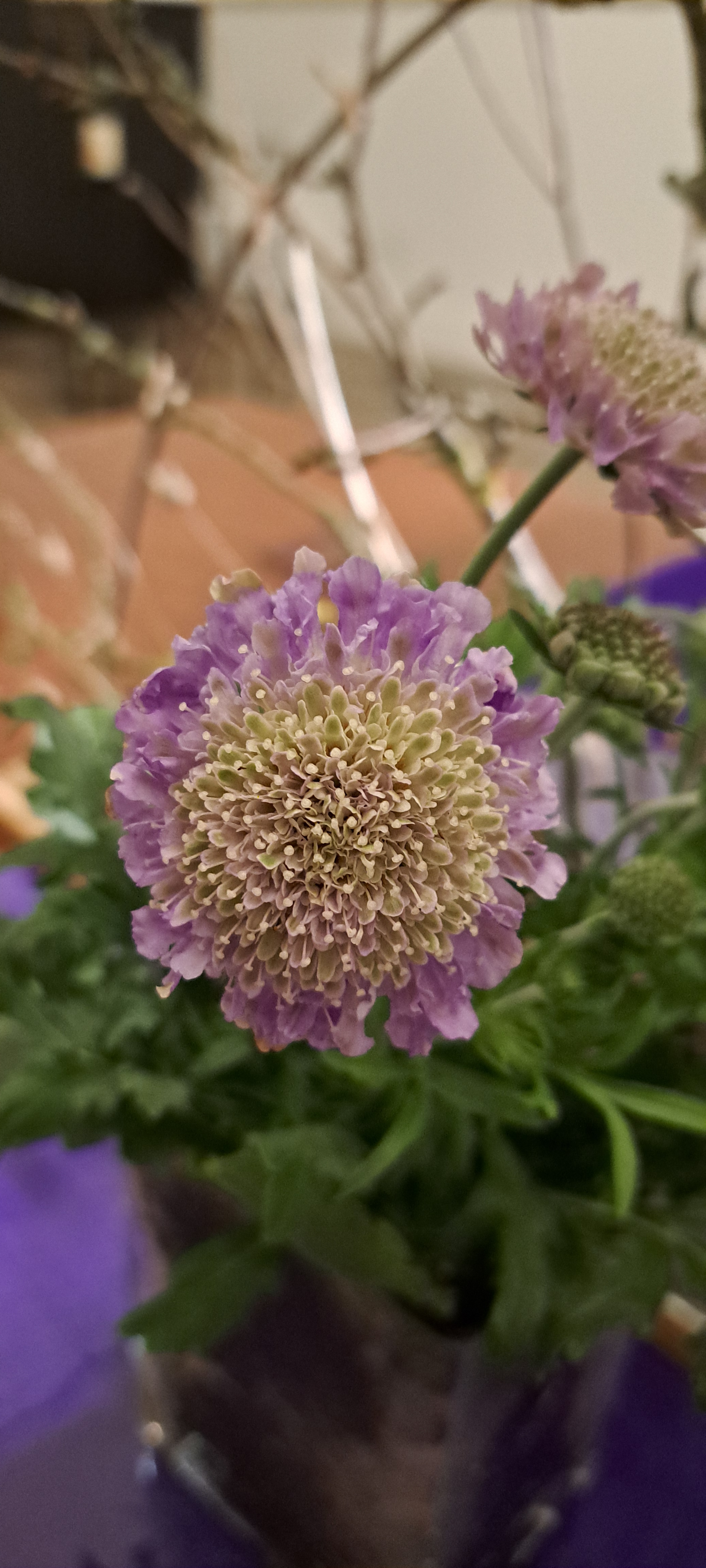Aan een tak linksboven in de schikking bevindt zich een kleine bloem van de Scabiosa of het Duifkruid. De bloem lijkt door zijn kleur op de kleur van een duif  en verwijst daardoor naar de Heilige Geest. Met een beetje fantasie lijkt het of het Duifkruid vanaf de Paaskaars aan komt zweven. De bloem is onopvallend aanwezig, zoals dat vaak ook is met de werking van de Heilige Geest.