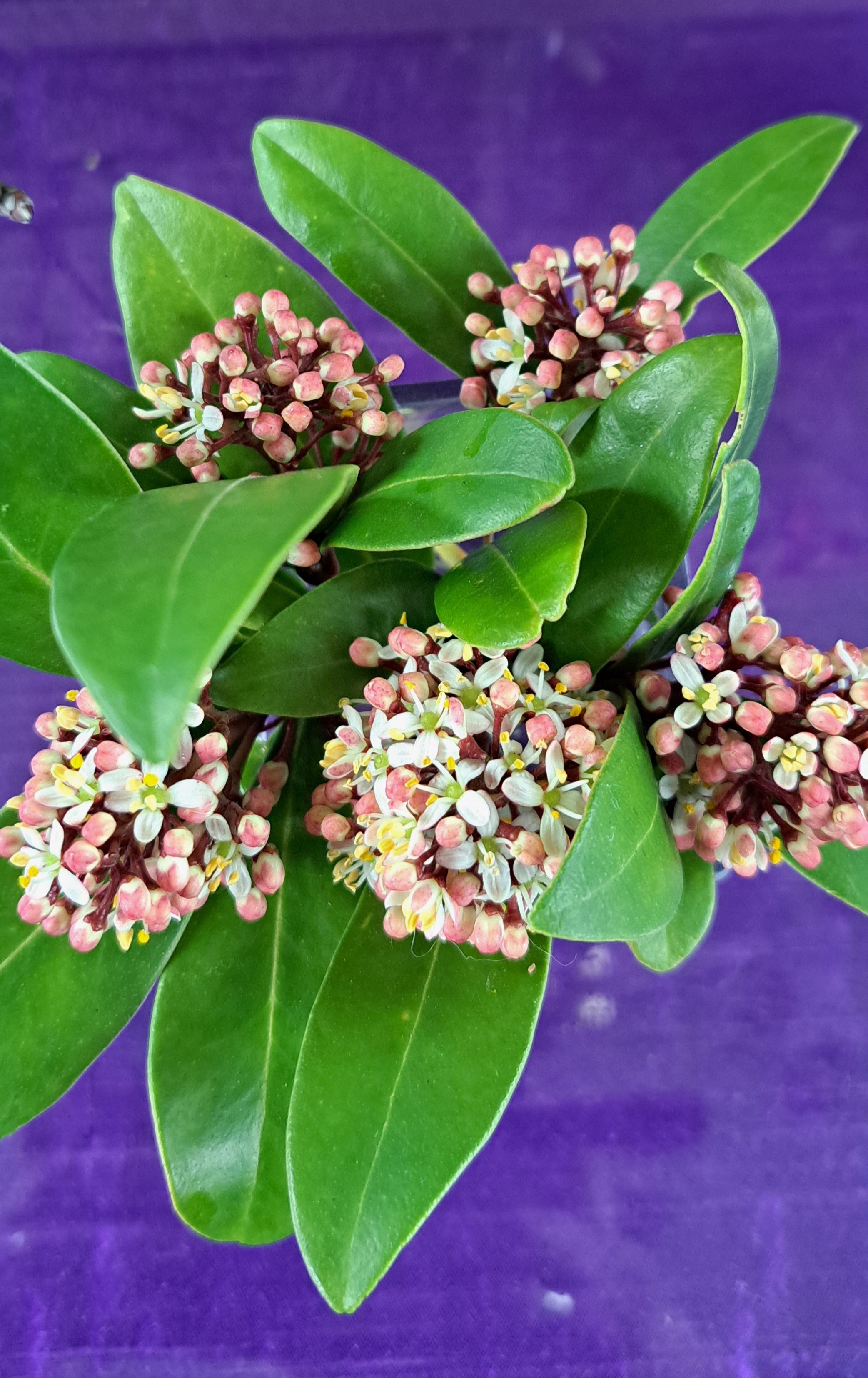 Alle schalen zijn nu onderling met elkaar verbonden, waardoor er een eenheid is ontstaan. Bij elke kaars is een witte Agaphantus geplaatst. De Agaphantus is net als de roos de bloem van de liefde. Verder zijn er her en der in de schikking witte Helleborussen verwerkt. De Helleborus wordt ook wel heilig kerstkruid genoemd. Dit heeft te maken met allerlei verhalen waarin verteld wordt dat er tijdens de geboorte van Jezus een opleving was in de natuur, allerlei bloemen bloeiden op om  even later weer te verdwijnen, maar de kerstroos bleef en bloeide door ijs en sneeuw heen.