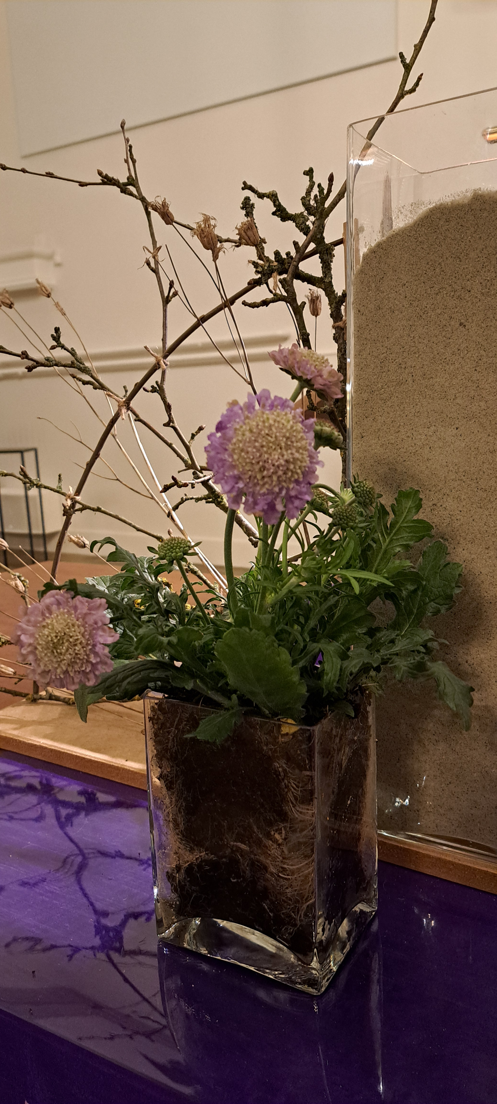 De basis van de schikking bestaat uit een boomstronk, die de levensweg van mensen verbeeldt. Het donkere dal van de doodsschaduw wordt verbeeld door stenen, boomschors en de donkere bloemen van de Sedum.