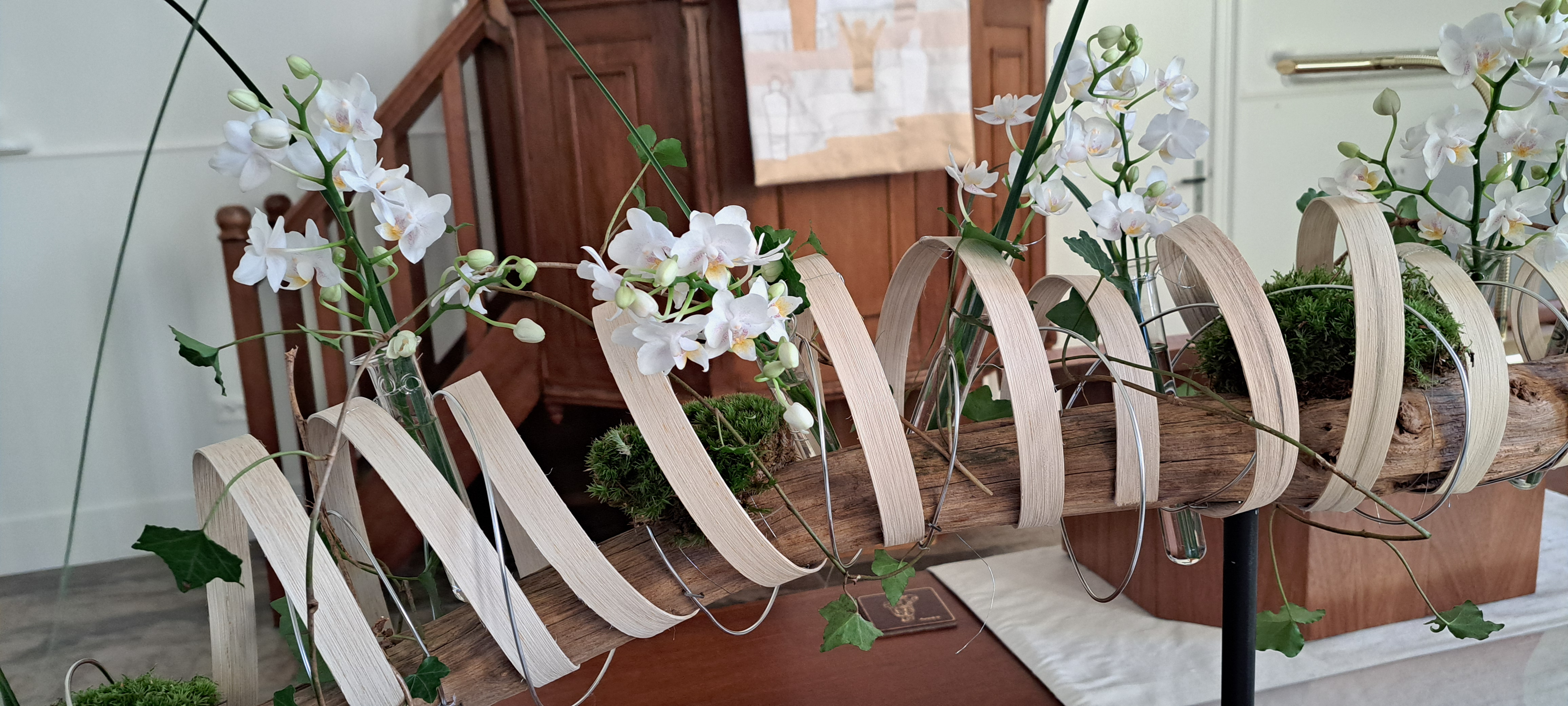 Bovenin de schikking bevindt zich een witte Calla. De vorm van de Calla is als een luisterend oor, die de Geest ontvangt. De kleur wit staat voor zuiverheid en oprechtheid, die het elkaar verstaan mogelijk maakt.