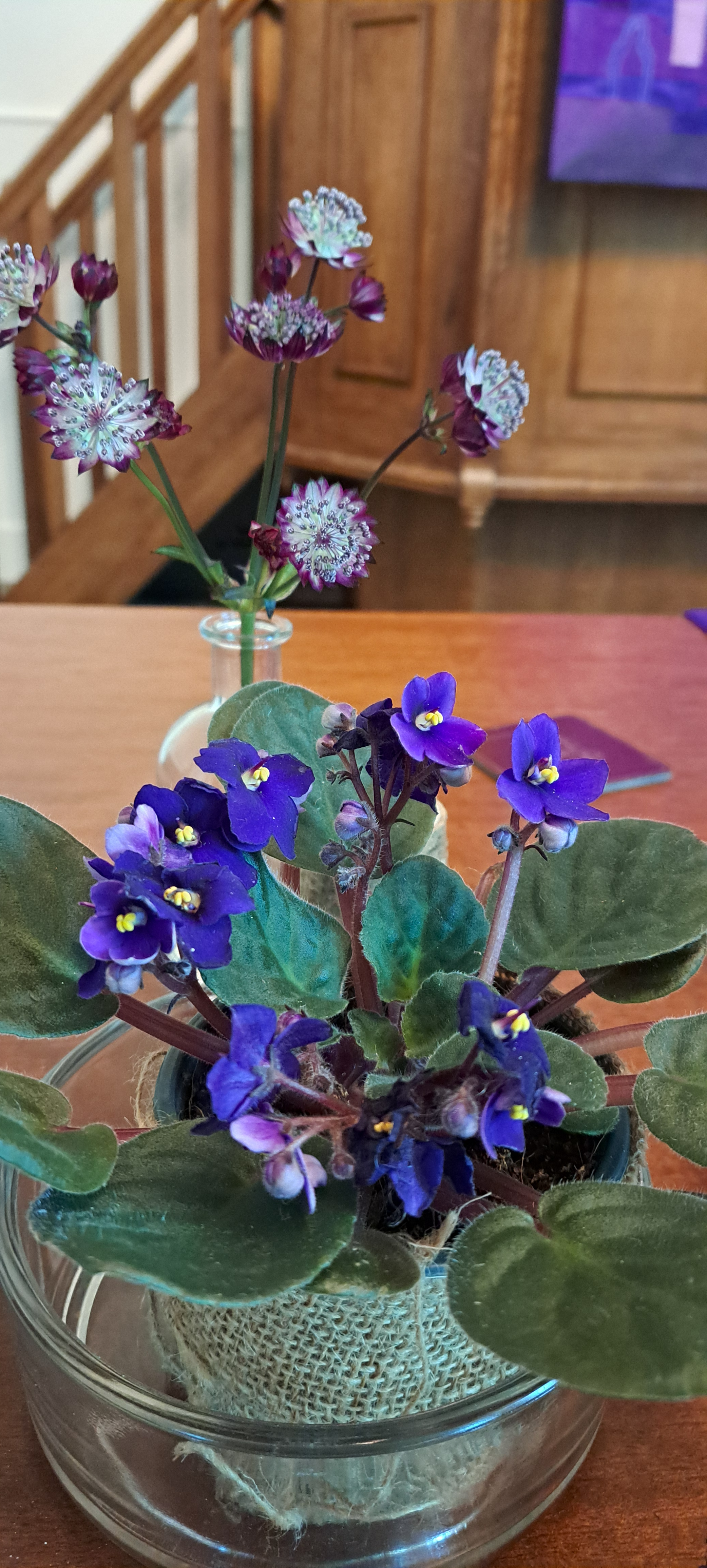 Tegelijk staat de staf symbool voor onze nieuwe predikant als geestelijk leider van onze gemeente. Aan de staf is een bolglas bevestigd met een bloem van de Scabiosa of te wel duifkruid. Het duifkruid symboliseert de kracht va Heilige Geest, welke wij ds. van Vliet toewensen.