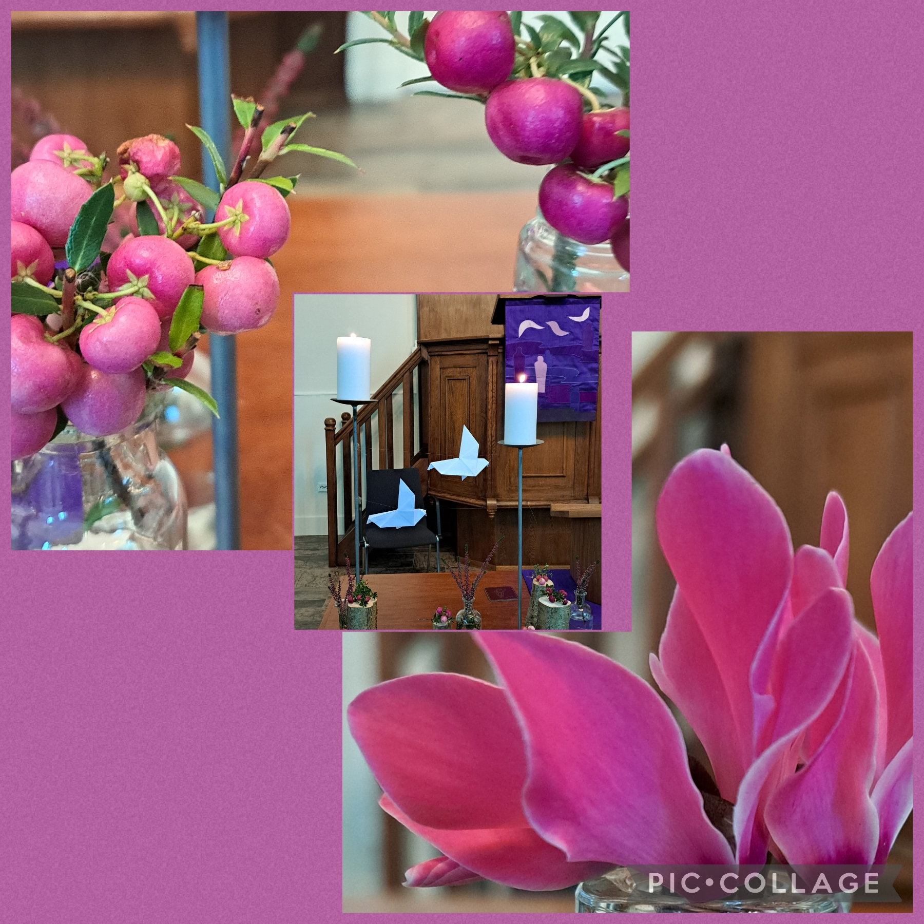 We willen jullie vragen om voordat jullie de kerk verlaten een roos en een Crocosmiatak uit de schikking mee naar huis te nemen, als teken van Gods liefde en de kracht van Heilige Geest, waarop jullie mogen vertrouwen bij jullie taak.